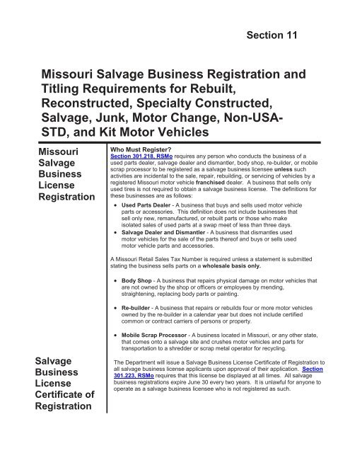 Section 11 Missouri Salvage Business Registration And Titling